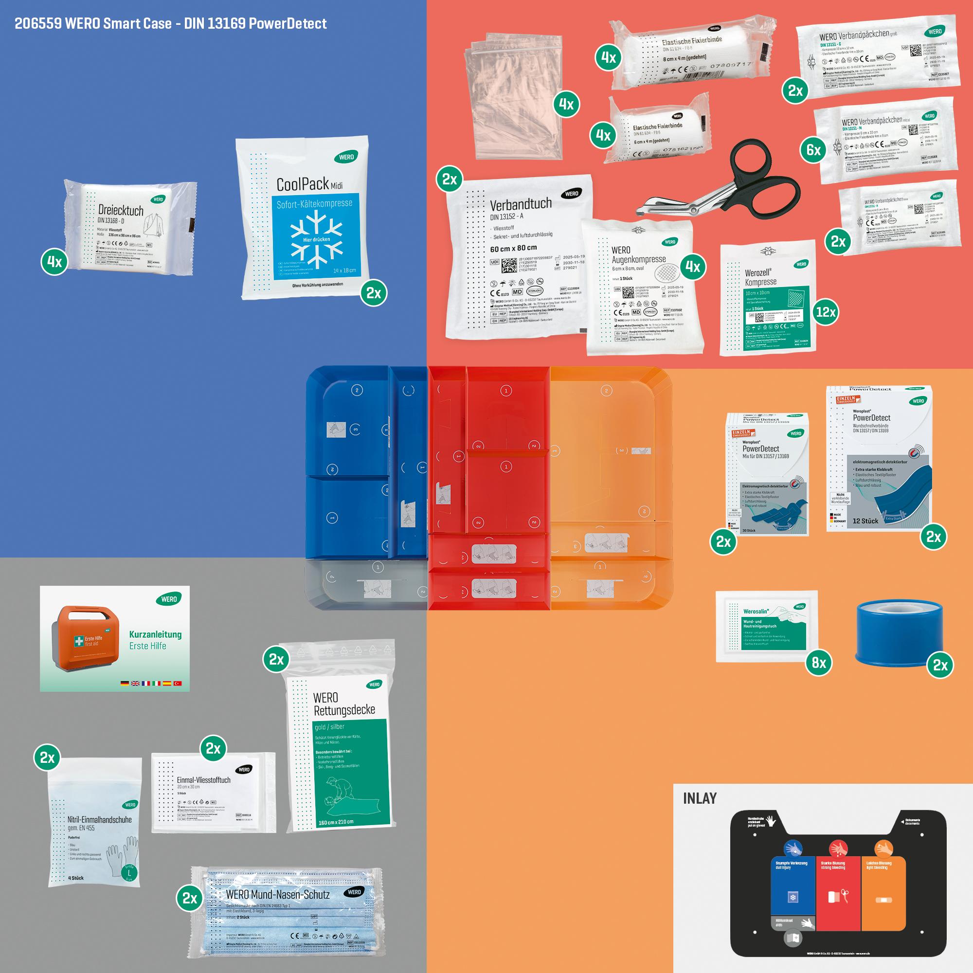 The WERO rescue blanket is an indispensable aid in any emergency situation, whether for accidents, outdoor adventures or in emergency medicine. It consists of a film coated on both sides with a gold and a silver side, which protects against both extreme cold and excessive heat. This lightweight and flexible blanket is a standard item in any first aid kit or first aid kit and provides reliable protection from the elements at critical moments.