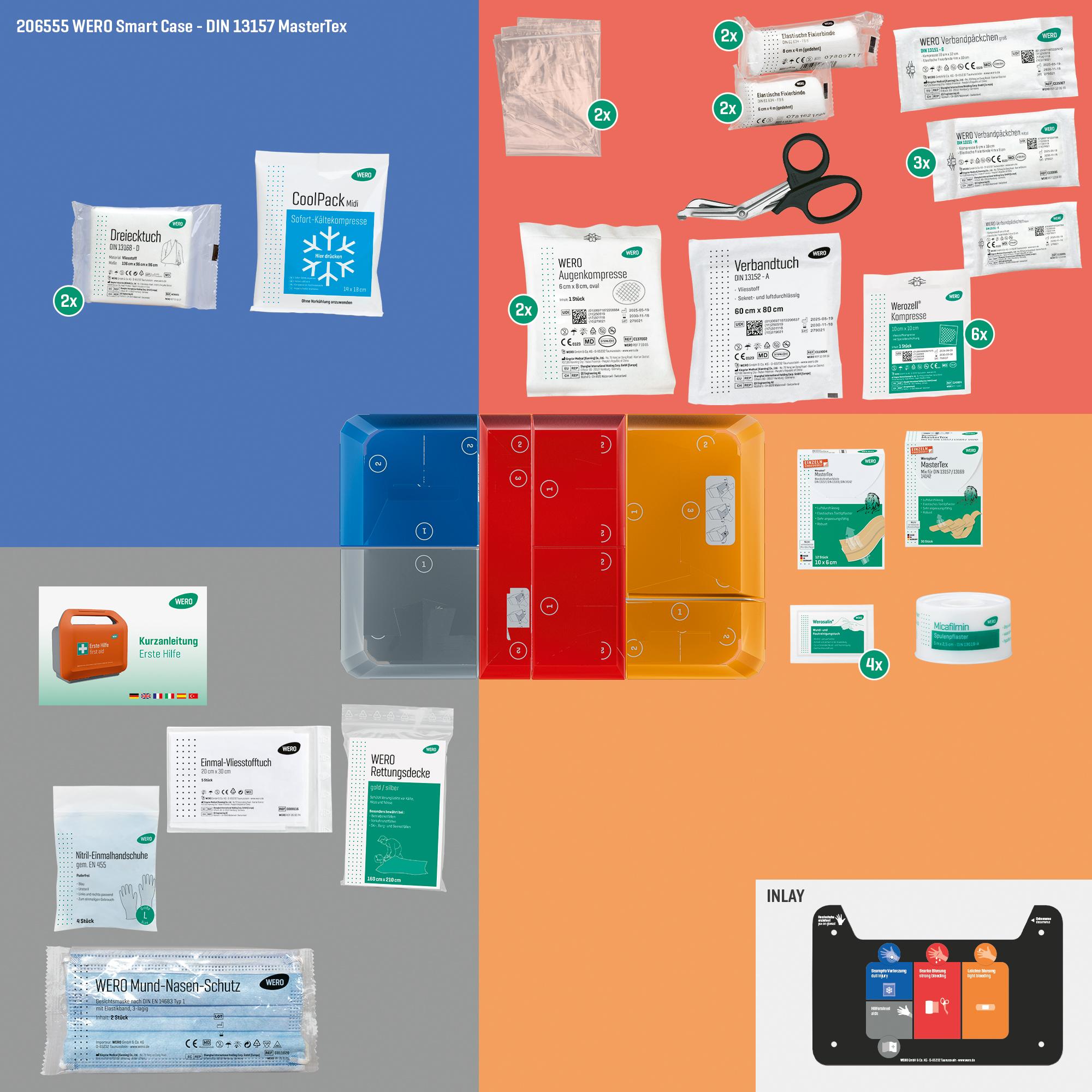 The WERO rescue blanket is an indispensable aid in any emergency situation, whether for accidents, outdoor adventures or in emergency medicine. It consists of a film coated on both sides with a gold and a silver side, which protects against both extreme cold and excessive heat. This lightweight and flexible blanket is a standard item in any first aid kit or first aid kit and provides reliable protection from the elements at critical moments.