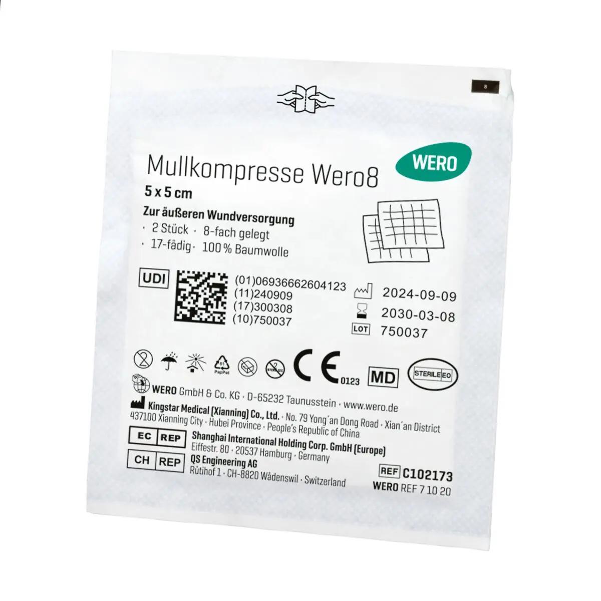 Gebrauchsfertige Mullkompresse aus Verbandmull – die klassische Wundversorgung